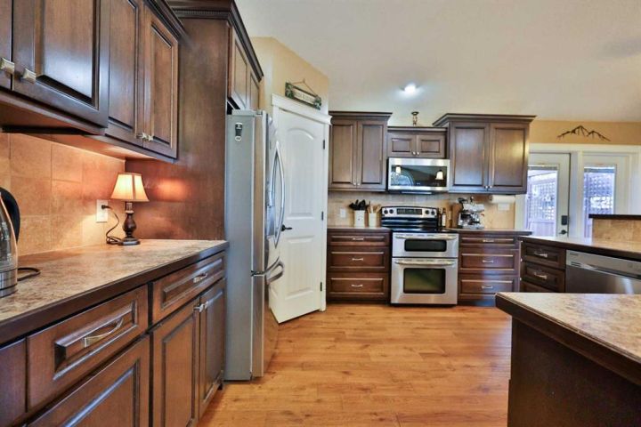 This stunning Picture Butte home truly has it all—backing onto a peaceful walking trail, lake, and back alley, and located just steps away from 2 elementary schools and about a 10 minute walk from the high school! Lovingly maintained inside and out, this property features both a single attached garage and a heated single detached garage—perfect for mechanics, car enthusiasts, or anyone needing extra parking or workspace! Inside, you’ll love the beautiful hardwood floors, open-concept kitchen, dining, and living area with an electric fireplace, and fresh paint and other all the thoughtful updates in different areas of the home. Enjoy peace of mind with a newer roof, brand new on-demand hot water system, high-efficiency furnace, and central air conditioning. The main floor offers three bedrooms and two full bathrooms, while the basement adds two more bedrooms, a third full bathroom, and a spacious family room with large bright windows that keep it feeling open and inviting—not your typical dark basement! The kitchen is an absolute chef’s dream with stainless steel appliances, ample countertop space, a pantry, and beautiful cabinetry! The main floor also hosts a main floor laundry room with additional storage cabinetry above the washer and dryer! There’s also a great dry bar area downstairs for entertaining. Mature trees in both the front and back yard add to the home’s charm, along with a covered front porch, back deck, and a fully fenced yard that’s perfect for kids or pets. This home is the full package—contact your favourite REALTOR® today and get in ASAP to see all it has to offer for yourself!! It truly has everything you and your family could possibly want!
