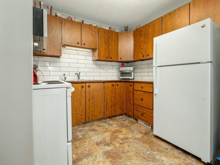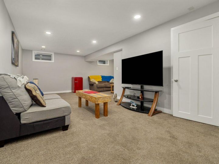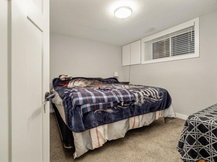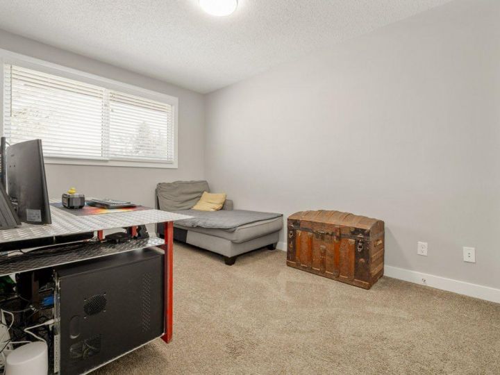 Nicely updated starter or downsizing bungalow home with an actual good size yard out back and parking for up to 5 vehicles on property! Driveway parking for a couple vehicles and gravel pad parking for others. Side entrance to home. Nicely painted inside in modern grey colour. Living room features large windows to the rear that let in tons of natural light. Newer windows throughout! Kitchen is functional and features full appliance package. Dining room is adjacent with garden doors to patio out back. Main floor also features 3 bedrooms and a full bathroom with tub/shower combo. Basement is fully developed with large rec room space, a 4th bedroom with walk-in closet, a 3 piece bath with stand-up shower, a storage room that could be used as an office/gym, and a furnace/utility room with laundry. Home has conveniences of central a/c. Hot water tank is 2 years old. Asphalt roof shingles, furnace, a/c are approximately 10 years old. Move in and enjoy!