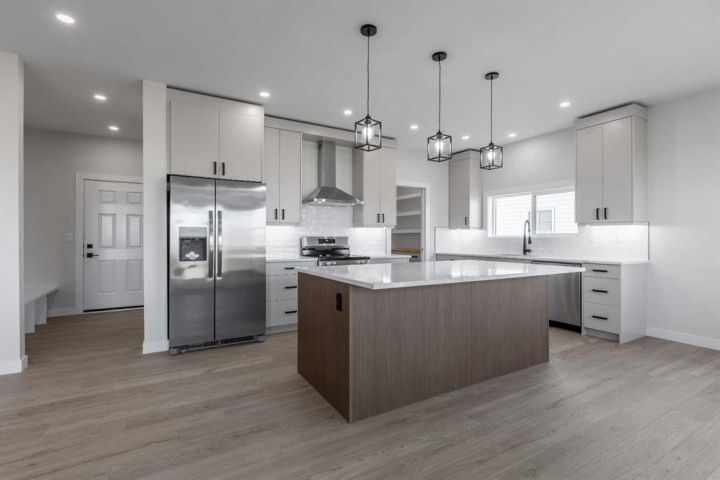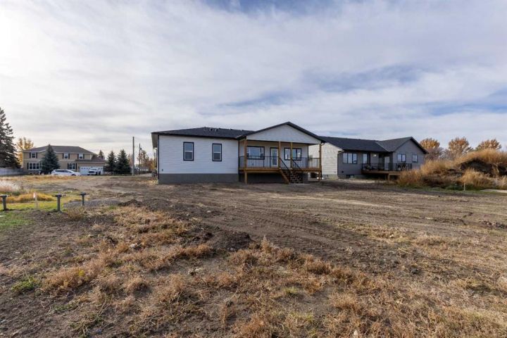 Welcome to this brand new build in the quaint and friendly town of Magrath just 20 minutes from Lethbridge! This beautiful home offers five bedrooms and three full bathrooms, giving families plenty of space to grow and enjoy. It features central air-conditioning, a bright main floor living room with a cozy electric fireplace, and a stylish kitchen with all new stainless steel appliances! The spacious dining area opens onto a large back deck that overlooks the nearly quarter-acre lot—perfect for kids to play, summer barbecues, or relaxing in the sun. With three bedrooms and the laundry room conveniently located on the main floor, this home is perfectly set up for young families! The primary suite includes a walk-in closet and a beautiful ensuite with a double vanity and walk-in shower. Downstairs, you’ll find a large family room ideal for movie nights or gatherings (a massive blank wall is calling for you to set up your projector!), as well as two more large bedrooms, and the third full bathroom. A double attached garage providing plenty of storage and convenience rounds out this spectacular home! Modern colour choices and finishes throughout give the home a clean, welcoming feel. Located in a fantastic neighbourhood in Magrath, this home has everything you could ask for—it’s just waiting for its new owners to move in and make it their own! Call your REALTOR® and book your showing today!