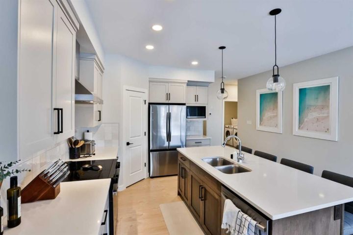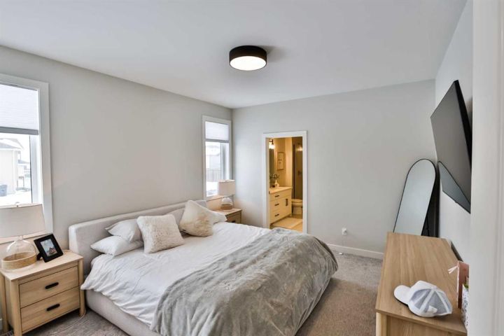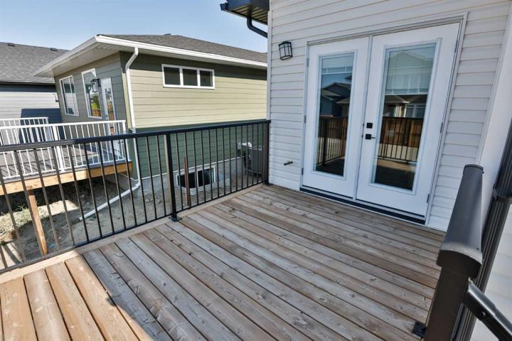 Check out this well designed bi level that is a must see! The main floor features an open floorplan with a lovely kitchen, dining room, half bath and a spacious living room. The kitchen features stainless steel appliances, a corner pantry, a good size island, and quartz countertops too! One of the best parts?! - Your primary bedroom is on the main floor! The primary features a nice size walk in closet, and an ensuite with double sinks, and a walk in shower as well! The laundry room is conveniently located on the main floor. Everything you need is close by! This home just keeps going, and features a second level built just a few stairs up with two bedrooms both with walk in closets, and there is a full four piece bath on this level too. The basement is freshly developed and is very spacious and open with two bedrooms, a huge family room, and another 4 piece bath as well as some great storage space. Outside you'll love the street view, and that the deck is already built for you to enjoy! Extensive concrete upgrades have recently been completed. One of the standout upgrades here is the concrete upgrade! The owners added full concrete along both sides of the home, creating a clean, low maintenance parameter and improved drainage. Out back, a gorgeous stamped concrete pad expands your outdoor living space - ideal for summer BBQ's, cozy evenings, or a future hot tub set up! Riverstone is a highly sought after community, with exceptional schools nearby, and this home is built just a short walk from a playground and park with a pond you can even fish in! Give your REALTOR® a call and come see this fabulous new home today!