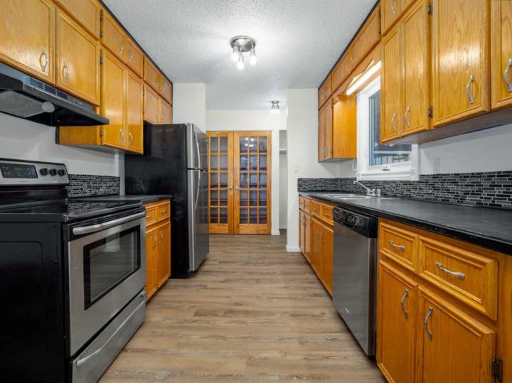 Step inside this welcoming 4-bedroom, 2-bathroom four-level split, offering exceptional space, flexibility, and comfort for today’s modern household. From the moment you arrive, you’ll appreciate the metal roofing on both the home and the detached garage — a durable, low-maintenance upgrade that provides peace of mind for years to come. Inside, the home features new paint and flooring, creating a bright and move-in-ready atmosphere. The main kitchen offers plenty of room to work, with refreshed cabinetry that maintains its classic charm. On the lower level, a kitchenette/secondary cooking area adds wonderful versatility — perfect for extended family, hobby cooking, entertaining, or additional meal prep space. The outdoor space is another highlight. Step out onto the new Trex deck, designed in a stylish two-tier layout. The main deck extends beautifully from the kitchen area, while a second raised tier off to the side creates an ideal spot for lounging, grilling, or enjoying evening sun — all with the low-maintenance durability Trex is known for. Each level of the home offers its own comfortable living areas, providing privacy and functionality for busy households. The large fully fenced yard is perfect for kids, pets, and outdoor enjoyment, while the detached garage adds extra convenience for parking or storage. Additional features include a new hot water on demand system, multiple living spaces, and thoughtful updates throughout. This home is vacant and easy to show — contact your favorite REALTOR® to book your viewing today!
