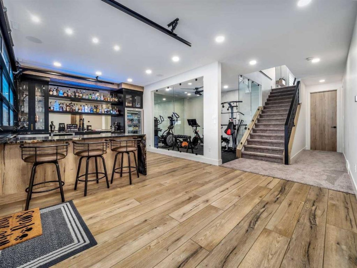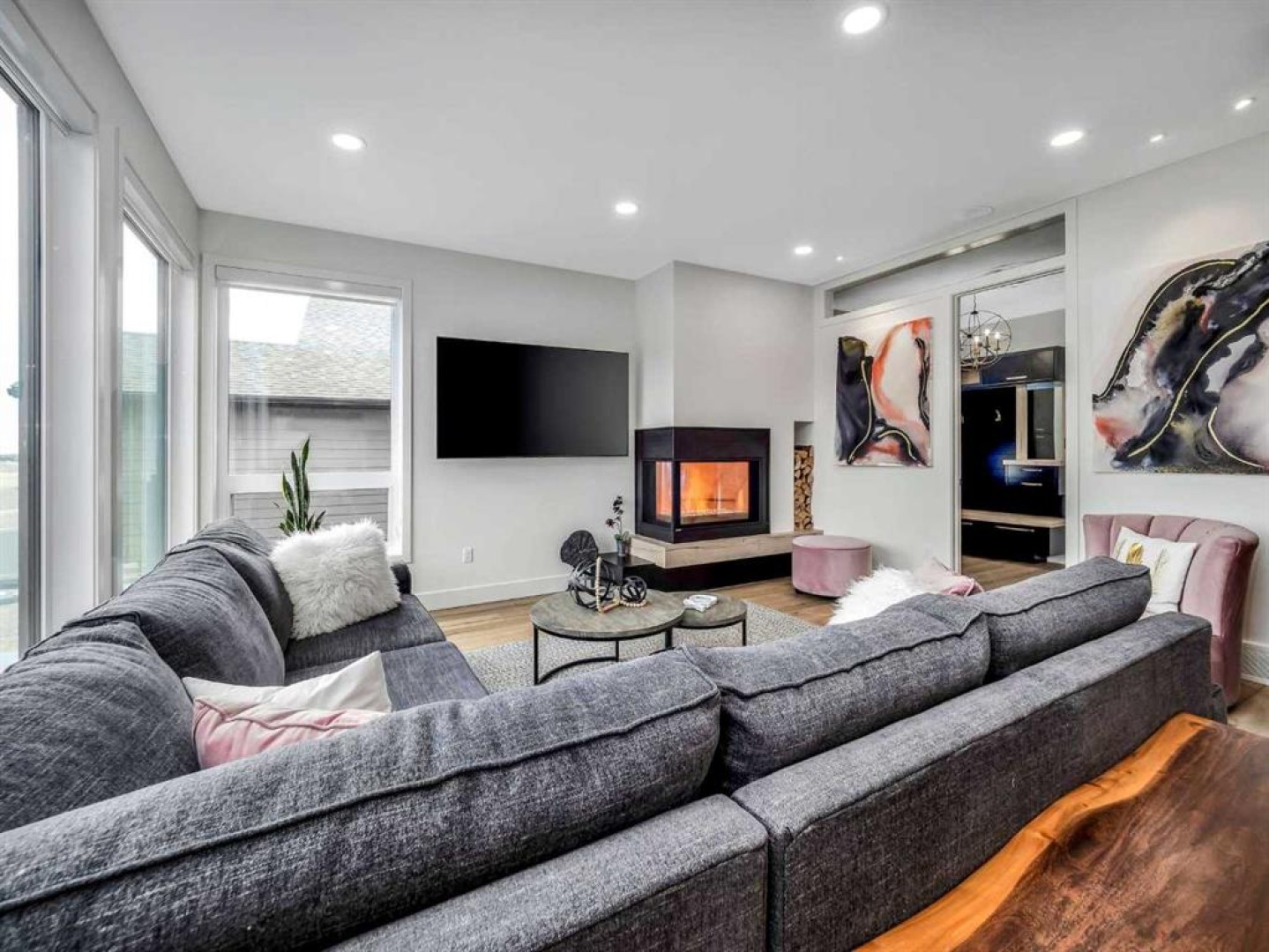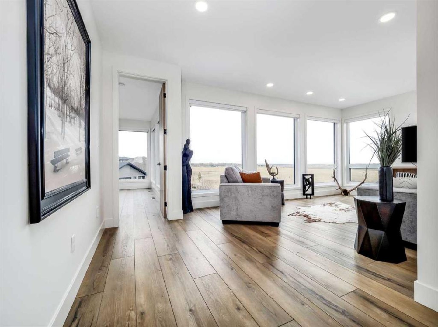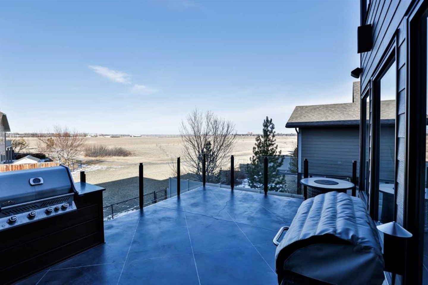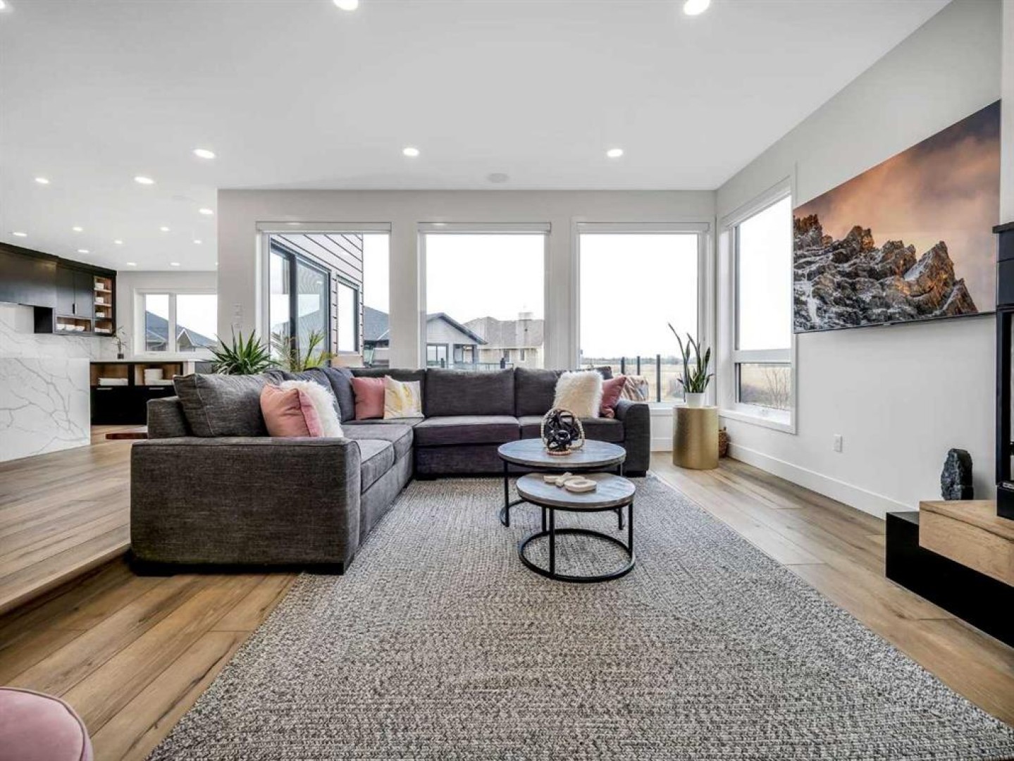 A rare opportunity to own the builder’s personal residence in one of Lethbridge’s most prestigious locations—Stonecrest Point, perched on the coulee’s edge in Riverstone. Every detail has been meticulously designed, resulting in nearly 5,000 sq. ft. of fully developed luxury with breathtaking coulee views, striking curb appeal, and extensive upgrades throughout. Inside, soaring 21’ ceilings, a dramatic floating solid-oak staircase with curved architectural detailing, and black powder-coated railings create a stunning first impression. Nine-foot ceilings span all three levels, complemented by 9” luxury vinyl plank flooring. The sunken living room features a beautiful two-sided gas fireplace with decorative hearth. The chef’s kitchen offers double islands, ceiling-height custom cabinetry, extensive drawer storage, appliance garage, integrated recycling, spice racks, and a large walk-in pantry. Premium Wolf and Sub-Zero appliances include a 48” gas cooktop with griddle, custom hood fan, double wall ovens, drawer microwave, and a side-by-side Sub-Zero fridge/freezer with water and ice. Two dishwashers on the main floor (plus a third in the basement bar), garburator, and thoughtful storage complete the space. An 8’ sliding glass door opens to a 14’ x 18’ concrete deck with frameless glass railing and built-in Napoleon BBQ, offering unobstructed coulee views. The main-floor office features 10’6” ceilings, built-in desks, ceiling beam detailing, and walk-in storage closet. A spacious mudroom provides custom built-ins, bench seating, shelving, and additional storage. The oversized heated garage includes a 27’ x 34’ main bay plus a workshop, epoxy floors, commercial overhead door, side-mount opener, hot and cold taps, floor drain, sink, and custom dog wash. The fully developed basement is an entertainer’s dream, showcasing a custom bar, ice maker, commercial bar fridge, and microwave. A commercial overhead pass-through door opens to an enclosed patio with electric screen, radiant heat, gas fire table, and Hot Springs hot tub for year-round enjoyment. This level also offers a bedroom with walk-in closet, a full bathroom with custom tile shower, a large living area, and a private glass-walled gym. Upstairs, a bonus room with floor-to-ceiling windows captures incredible coulee views. Bedrooms feature walk-in closets, blackout blinds, and built-in bed bases. Two bedrooms share a Jack and Jill bathroom with frameless glass shower. The primary retreat is exceptional, offering continued views and a spa-inspired ensuite with a massive custom tile shower with dual showerheads, makeup vanity, water closet, and a walk-through closet connecting to the laundry room. The laundry room includes pull-down drying racks, steam dryer, sink, and generous counter space. The exterior is equally impressive with composite siding, synthetic turf, drip irrigation, raised garden beds, stamped concrete driveway, and so much more. A statement home in an iconic location - luxury living without compromise.