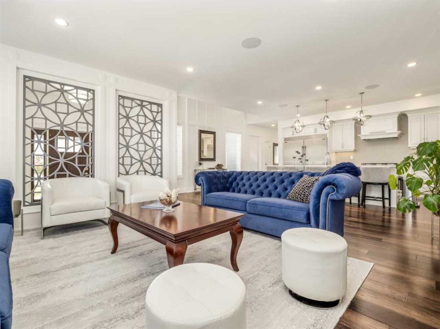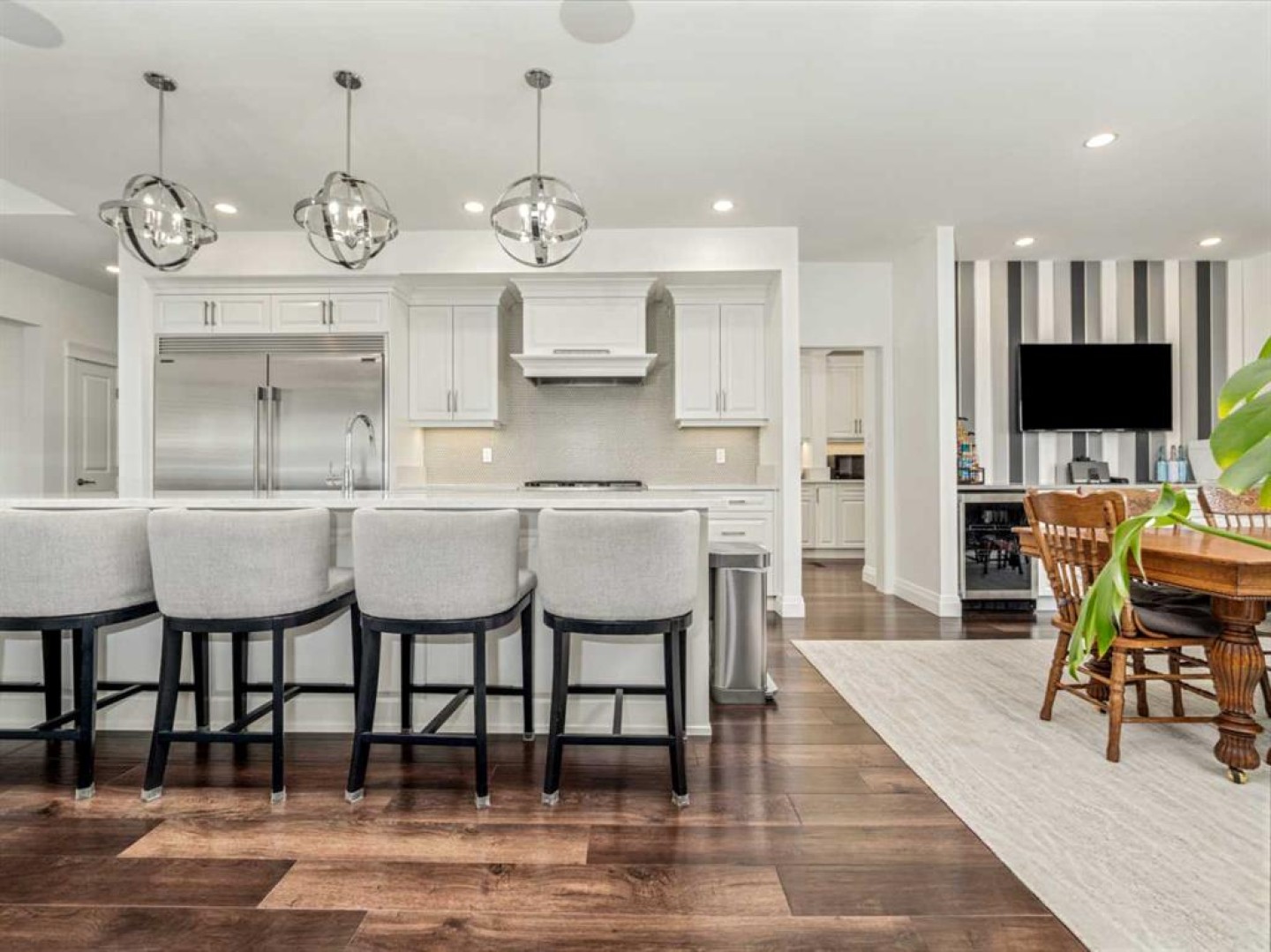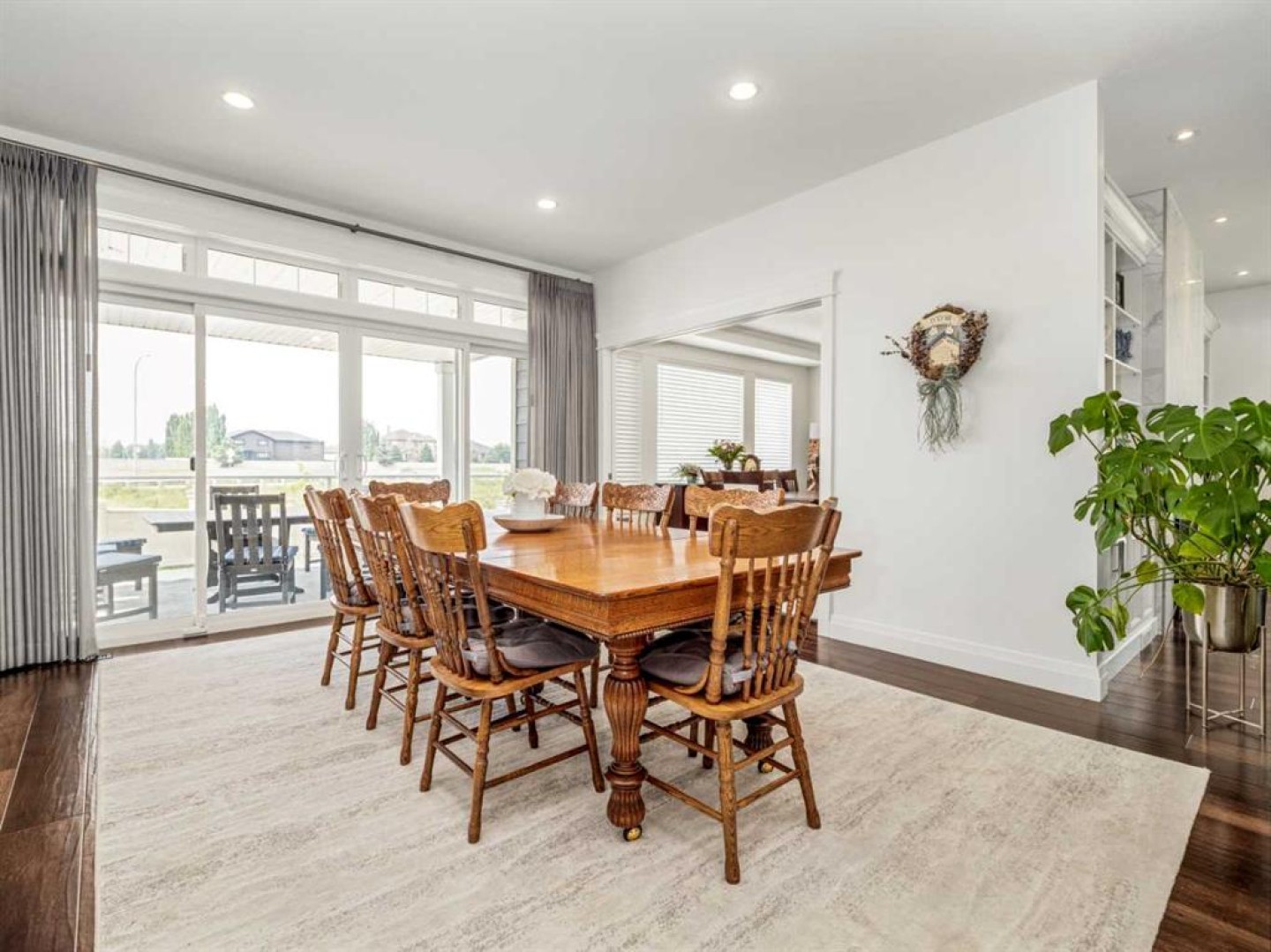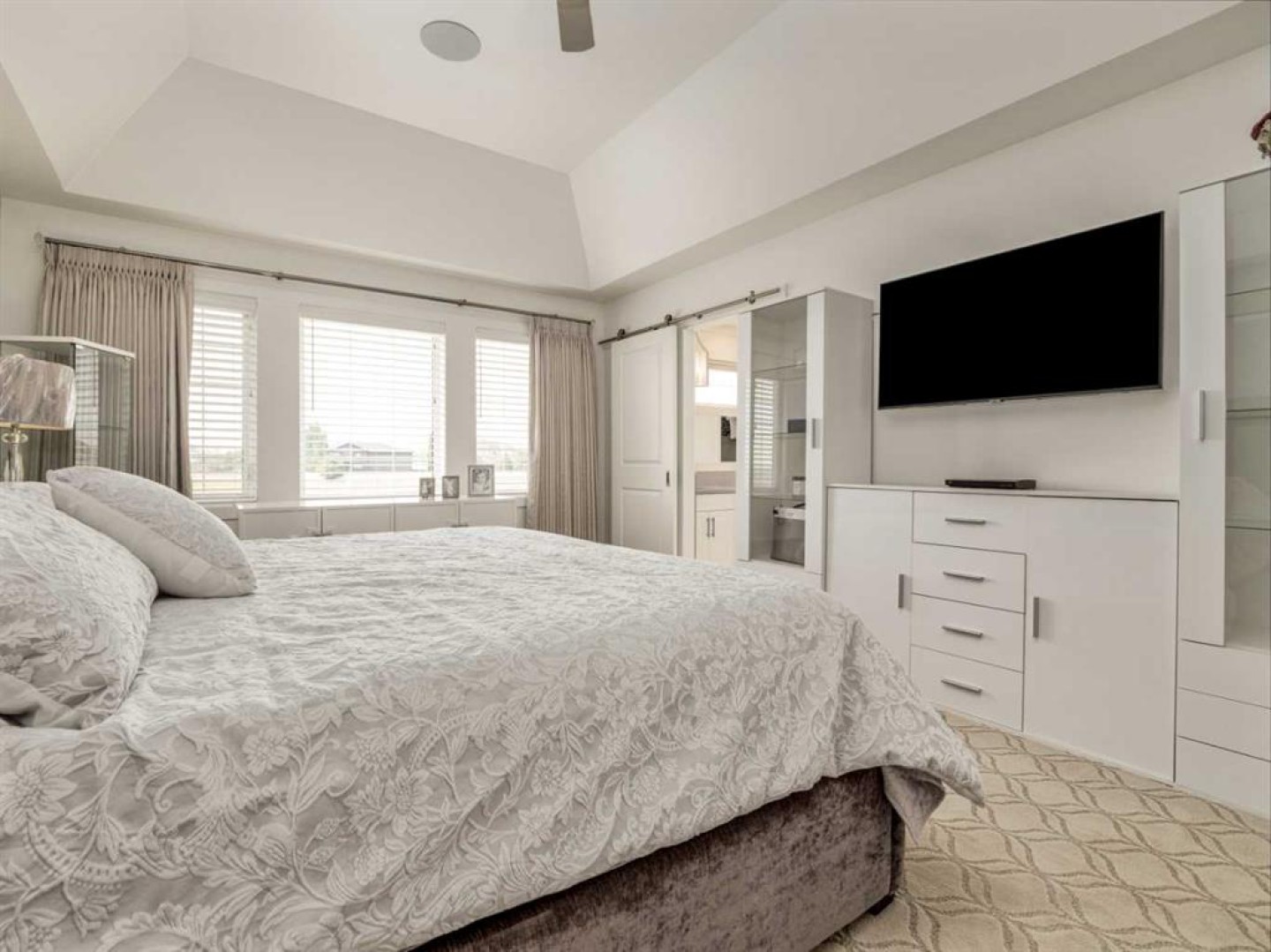 Come and discover a truly one of a kind luxury home in the beautiful neighborhood of Prairie Arbor. This uniquely stunning residence boasts an open concept main floor designed to entertain. The gourmet kitchen amazes with quartz countertops, 6 burner gas stove, under counter lighting, garburator, counter depth fridge and freezer, and an oversized island for meal prep and casual dining. The enormous butler's kitchen/pantry is one that any chef would envy. The main floor has a large kitchen seating area as well as a traditional formal dining room and a truly beautiful living room. A large, partially covered deck adds extra space and a bright airy feel to the main floor. An elegant powder room on the main floor, allows entertaining to take place all on the main level. Continuing the grand design to the 2nd floor you will find an interior balcony overlooking the main floor foyer, highlighted by a modern chandelier. This floor has 3 of the four spacious bedrooms. The main bedroom is a truly amazing personal space with a 4 pce ensuite with vanity area, a massive double shower with bench and a room sized walk in closet complete with 2 sets of built in drawers, an entire wall of shelving for shoes, a full length mirror and island with custom made jewelry drawers. The main laundry is on the second floor, as well as another elegant 4 pce bathroom and 2 more large bedrooms. The bonus room upstairs is the perfect size for some family downtime before you turn in. The walkout basement is equally impressive both in luxury and functionality, boasting a huge theater room, an office, a second laundry with stackable washer and dryer, a dry storage room, cold storage and outdoor storage with Peka rollshutter closure. The oversized bedroom has 2 large closets and large windows for a main floor feel, with in floor heat throughout. The location of the 3 pce bathroom for this floor gives an ensuite feel while serving as the main bathroom for this floor. Another kitchen allows for food service in the games/family room and sliding doors open onto a large covered patio for more indoor outdoor living space. There is a large, well windowed mudroom with built in bench and storage cubbies, that leads to a massive 3 car garage. The garage is every guy's dream with a 12 ft ceiling and Platinum garage floor treatment, in floor heating and wiring for an EV. The 3rd garage door has a pull-through door to a concrete pad in back. For additional storage, there is a newly built house-matching shed in back for extra storage items so your garage can be dedicated to parking vehicles. With the front and side yard fully landscaped with an underground sprinkler system, this lot still has space enough to add any other luxuries you can dream up. From Home One outdoor lighting to Control 4 smart home systems, this home has it all; great location, luxury features, grand design with all the extras. It truly is a dream home.
