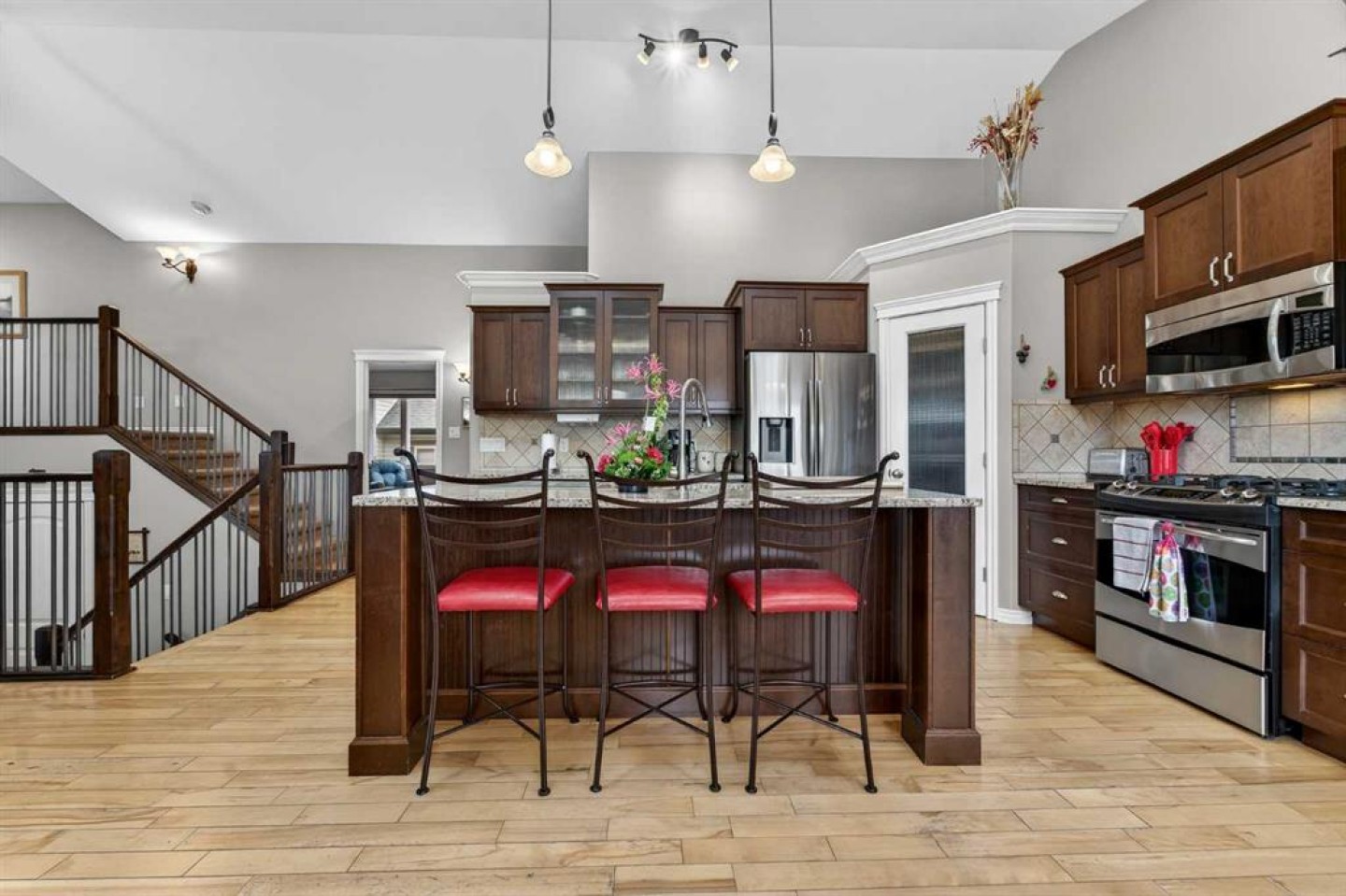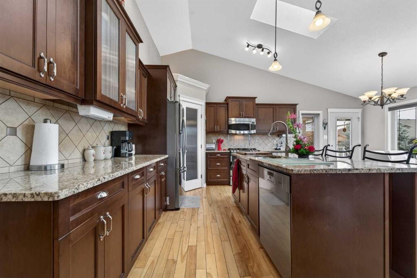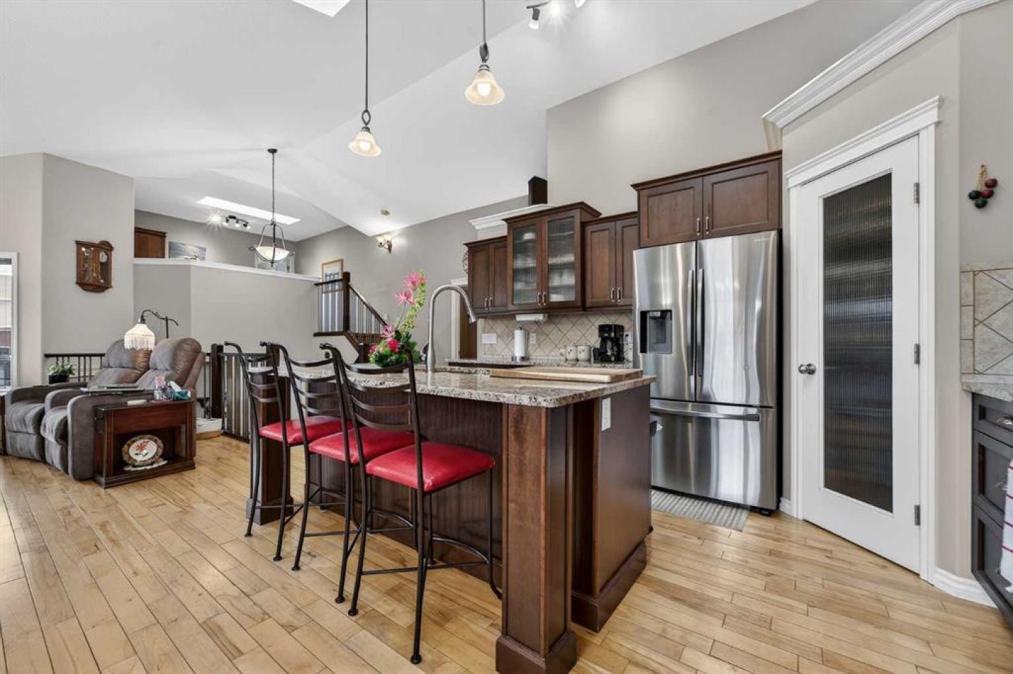 Welcome to this stunning 1,711 sq. ft. bi-level located in the prestigious Sixmile neighbourhood in South Lethbridge — a perfect blend of luxury, space, and functionality. This impressive 5-bedroom, 3-bathroom home offers exceptional design and thoughtful upgrades throughout. The main floor features beautiful hardwood flooring, granite countertops, a gas range, and a cozy gas fireplace that anchors the open-concept living space. The kitchen is both stylish and functional, ideal for entertaining or everyday family life. Just outside, you’ll find a covered back deck overlooking a fantastic yard designed for gatherings, complete with pergola and pre-wiring for a hot tub. The primary retreat is truly a showstopper — massive in size with elegant coffered ceilings, recessed lighting, and a spacious walk-in closet with convenient laundry access. The ensuite is spa-inspired, featuring a large jetted soaker tub, dual vanities, and an oversized tiled shower. At the top of the stairs, a dedicated office space just outside the primary bedroom creates the perfect work-from-home setup. Downstairs, 9-foot ceilings enhance the already expansive feel of the fully developed basement, which includes a second gas fireplace, two large bedrooms, and a generous family room — ideal for movie nights or entertaining guests. A walkout closet adds extra storage convenience. Car enthusiasts and hobbyists will appreciate the large garage with plenty of room to tinker, along with additional RV parking. Major updates provide peace of mind, including new shingles (2015 with the remaining side completed in 2025) and brand-new windows and skylights throughout in 2025. Located close to schools, shopping, and numerous restaurant amenities, this exceptional Sixmile home offers upscale living in one of South Lethbridge’s most sought-after communities. If you’ve been waiting for a spacious, upgraded family home in a prime location — this is it.