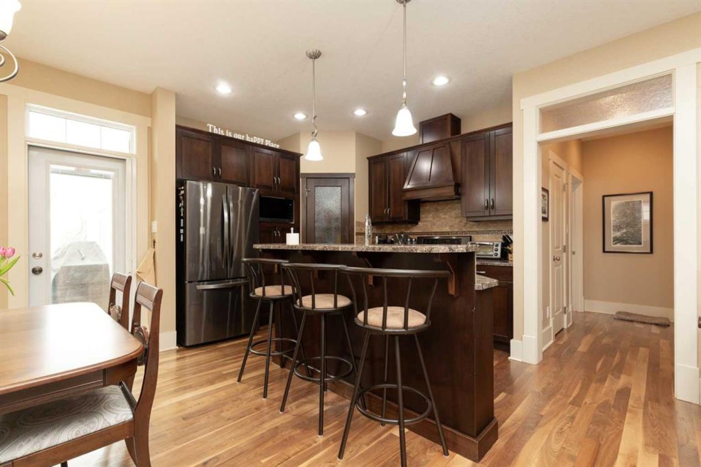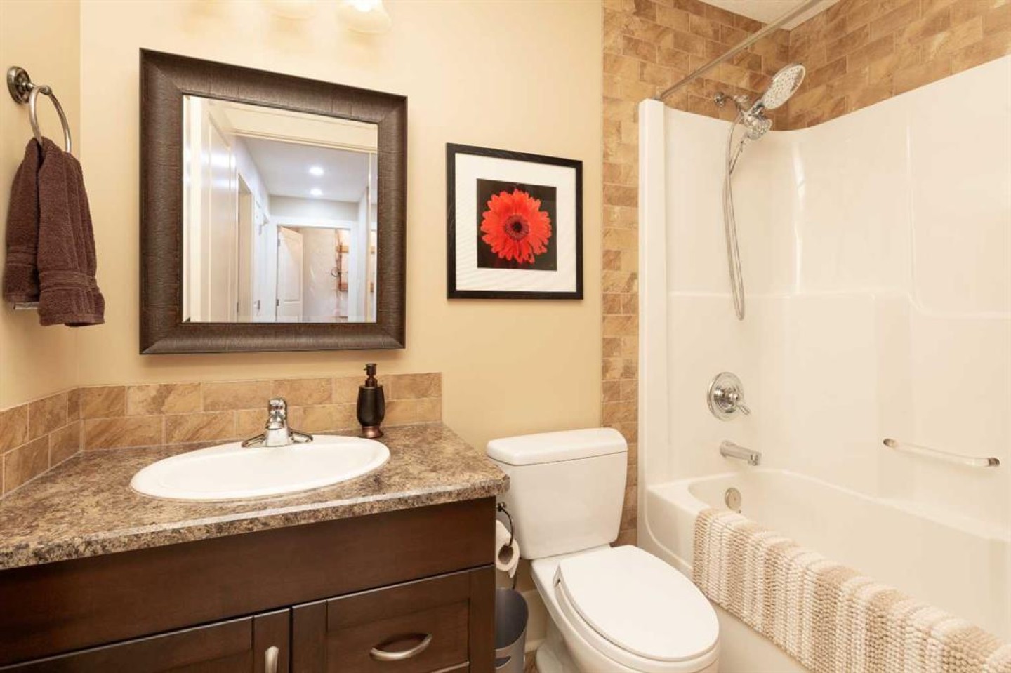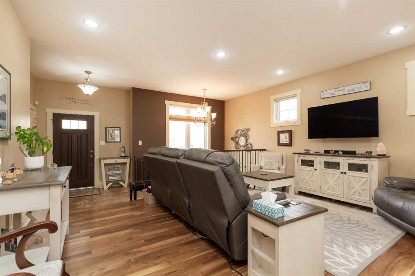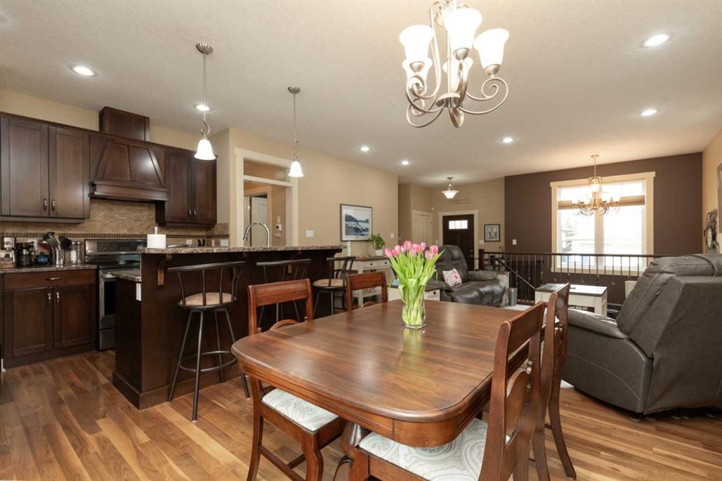 Welcome to 12 Cougar Cove N — a beautifully maintained bungalow built in 2009 offering 1,115 sq. ft. of thoughtfully designed living space in a quiet, family-friendly neighbourhood. The open concept main floor seamlessly connects the living room, dining area, and kitchen, all highlighted by rich hardwood flooring and impressive 9' ceilings that create a bright and spacious feel throughout. The kitchen features beautiful wood cabinetry and a full set of LG stainless steel appliances that are only three years old, making it both stylish and functional. The main floor offers two comfortable bedrooms and two full bathrooms, including a private primary ensuite. Downstairs, the fully developed basement adds even more living space with two additional bedrooms, a third full bathroom, and a large family room complete with a cozy gas fireplace and wet bar — perfect for entertaining or relaxing evenings at home. Brand new carpet throughout the basement adds a fresh and inviting touch. Step outside from the dining room onto the composite deck with a pergola, overlooking a nicely landscaped yard that includes a professionally designed space for an above-ground pool. The heated and insulated 22' x 25' attached garage provides plenty of room for vehicles, storage, and projects year-round. With its excellent layout, quality finishes, and peaceful location, this home offers the perfect blend of comfort and convenience.