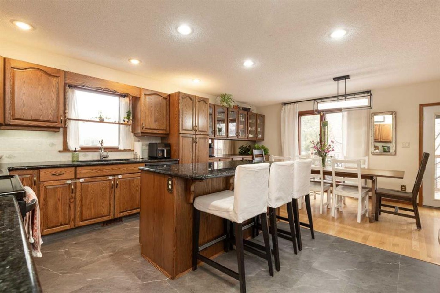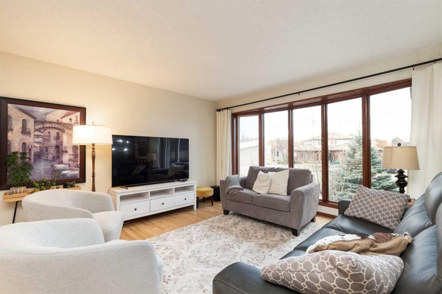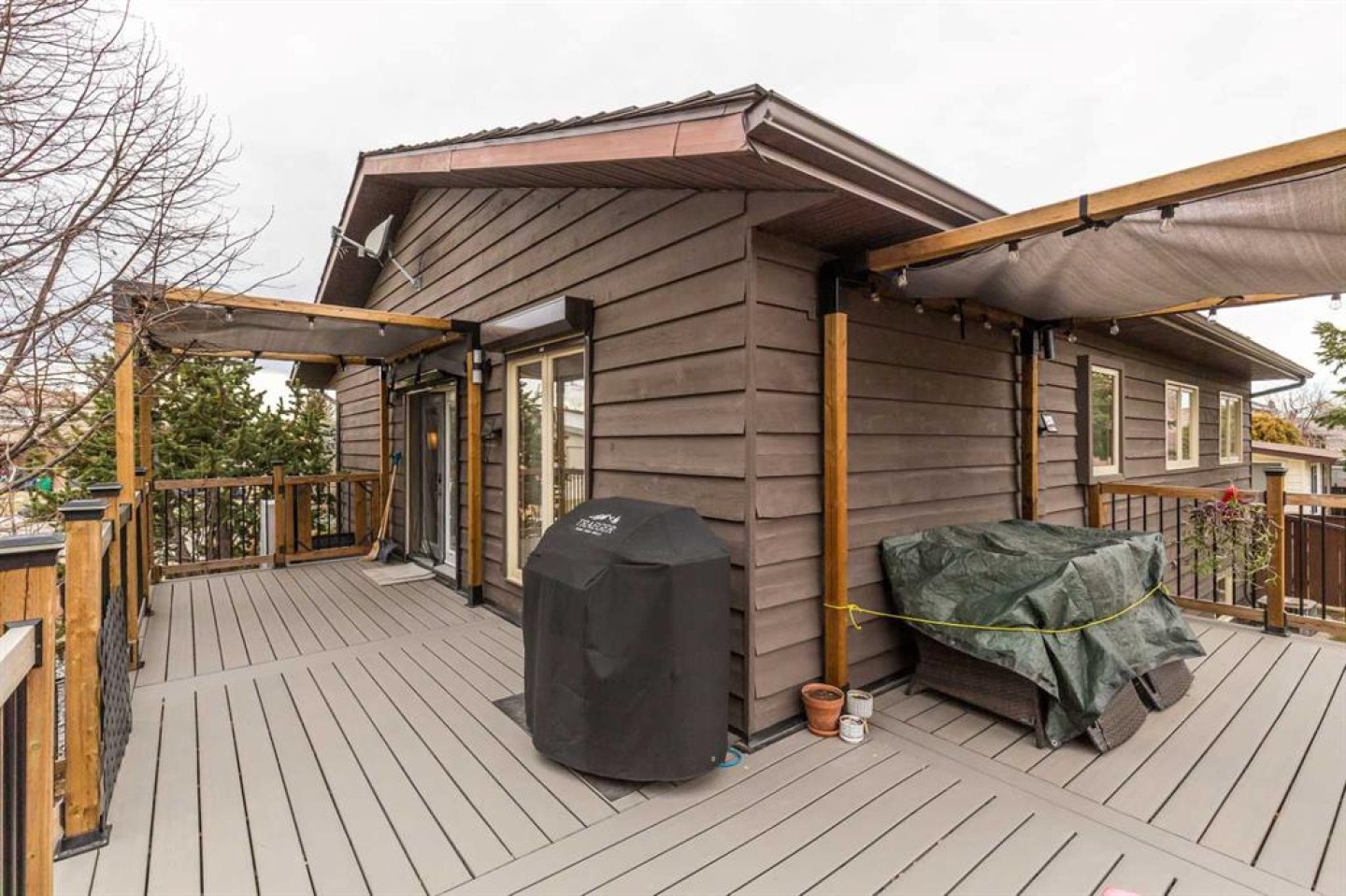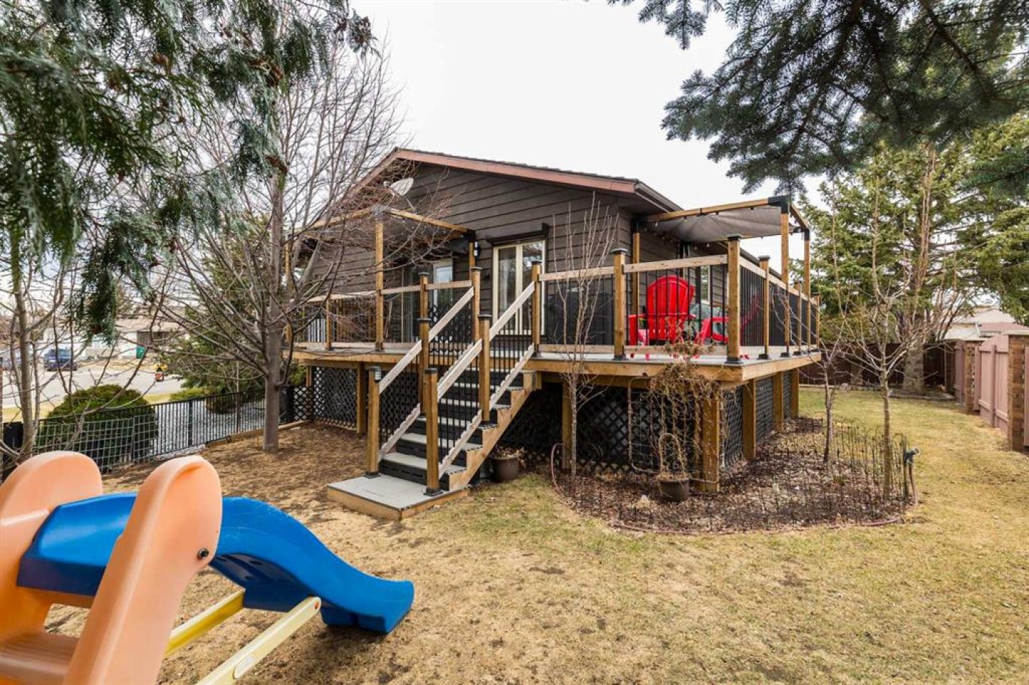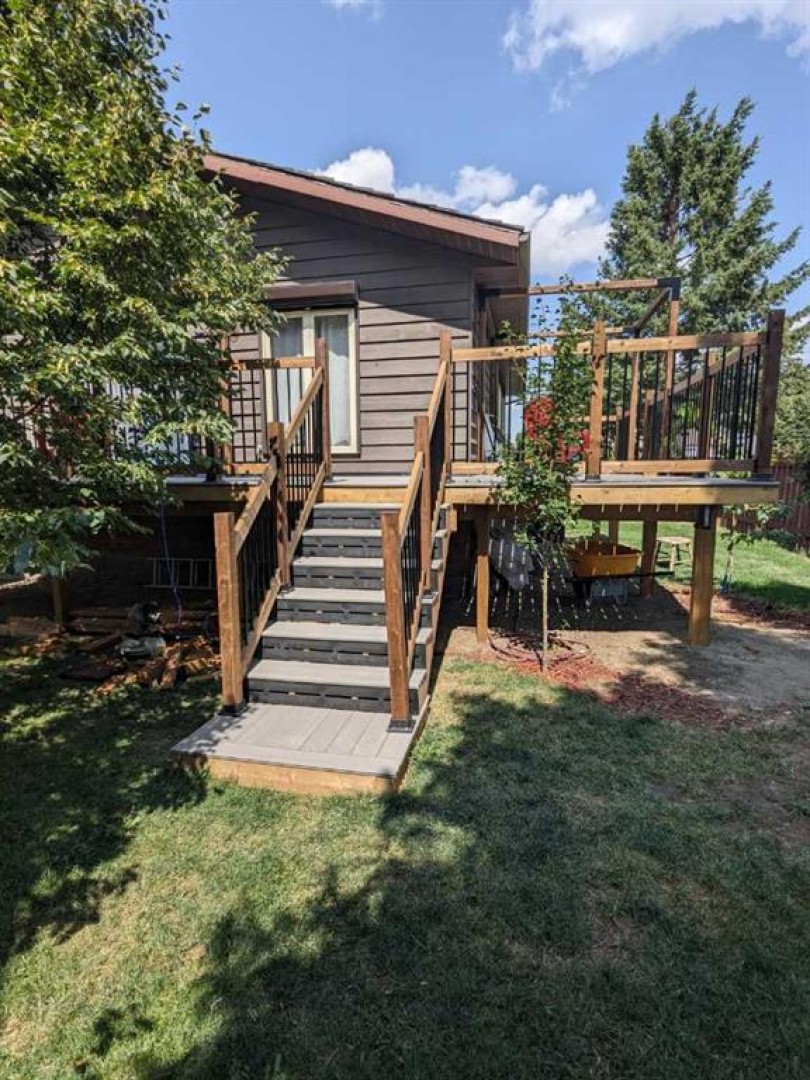 Welcome to 2208 27 Ave S, an exceptionally well-maintained 1,314 sq.ft. bi-level tucked into a fantastic cul-de-sac location in desirable Tudor Estates. This home blends timeless character with thoughtful modern updates, featuring original hardwood throughout the main floor alongside vinyl plank flooring, fully renovated bathrooms, granite kitchen counters, and contemporary paint colours. The main floor offers a semi-open layout with a spacious living room, dining area with built-in buffet cabinetry, and a large kitchen complete with oak cabinetry, stainless steel appliances, a generous island, and plenty of counter and storage space. You’ll also find 3 bedrooms and 1.5 bathrooms, including a convenient 2-piece ensuite. Downstairs, the fully developed basement provides an expansive family room with bar area, 2 additional bedrooms, a full bathroom, laundry, and a utility room with ample storage. Step outside to a newly updated deck off the dining room that wraps around the side and back of the home, overlooking a large, private yard with mature trees and no rear neighbours. Additional highlights include a double attached garage, central A/C, and a recently rebuilt fence. Ideally located just minutes from shopping, restaurants, Lethbridge College, and other south side amenities.